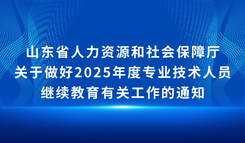 各市人力资源社会保障局,省直有关部门(单位),各高等院校、专业技术人员继续教育基地、行业协会:为深入贯彻落实中央、省委人才工作会议精神,加强专业技术人员继续教育工作,根据《专业技术人员继续教育规定》(人力资源社会保障部令第25号)和《山东省专业技术人才知识更新工程(2022-2030年)实施方案》(鲁人社发〔2022〕26号)等有关规定,现就做好我省2025年度专业技术人员继续教育(以下简称继续教育)有关工作通知如下:一、继续教育工作要求继续教育工作是贯彻落实国家重点战略、推进新时代社会主义现代化强省建设的重要举措,是提升专业技术人员能力素质的重要手段。各市、各部门和继续教育基地要根据国家和我省专业技术人员继续教育有关规定,分领域、分专业、分类别加快推进继续教育工作,不断提升专业技术人员自主创新能力,培养造就一批创新型、应用型、技术型人才。用人单位要把专业技术人员参加继续教育情况作为专业技术人员考核、聘任和申报评审职称的重要条件,支持专业技术人员参加继续教育学习,提供必要的学习条件和时间